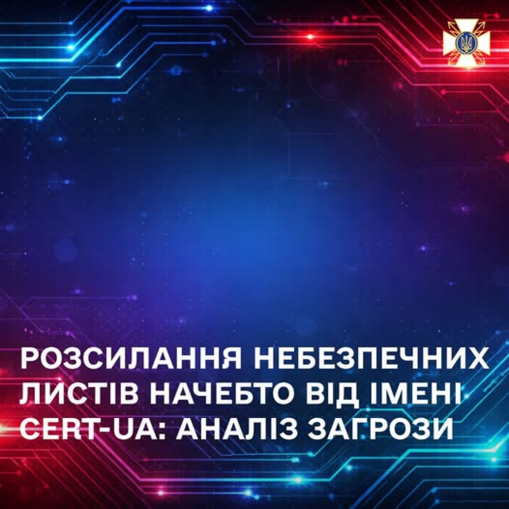 Державна служба спеціального зв'язку та захисту інформації України попередила про розповсюдження небезпечних електронних листів нібито від імені CERT-UA.