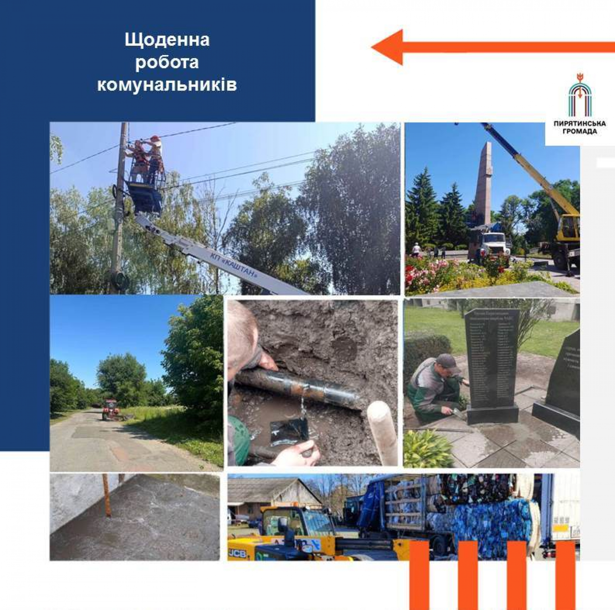 - проведення благоустрою: прибирання сміття та обкіс місць загального користування, в тому числі дитячих майданчиків, зупинок та узбіч доріг, обпилювання гілок, ремонт плити пам’ятного знаку ліквідаторам аварії на ЧАЕС;