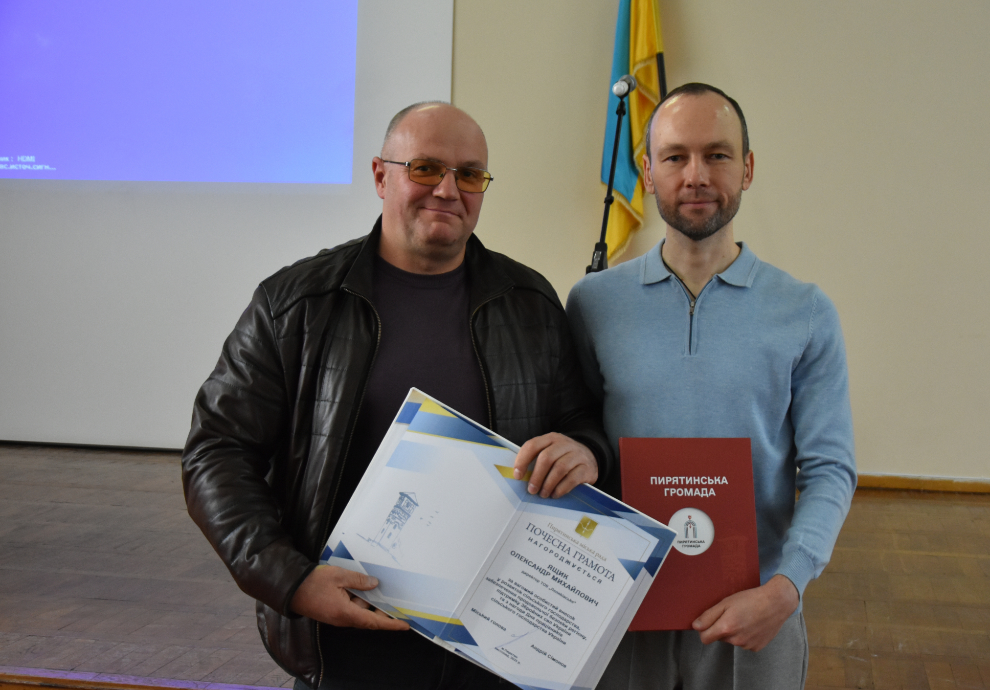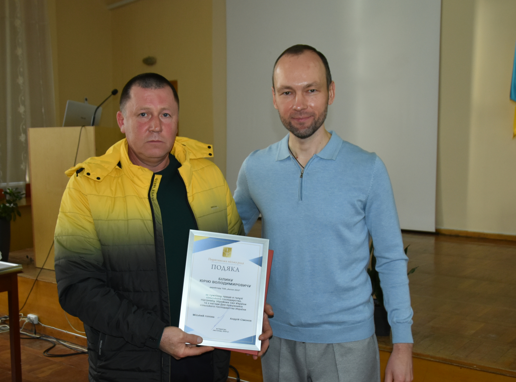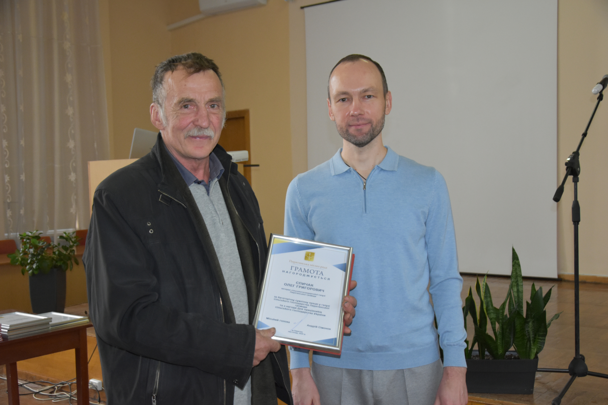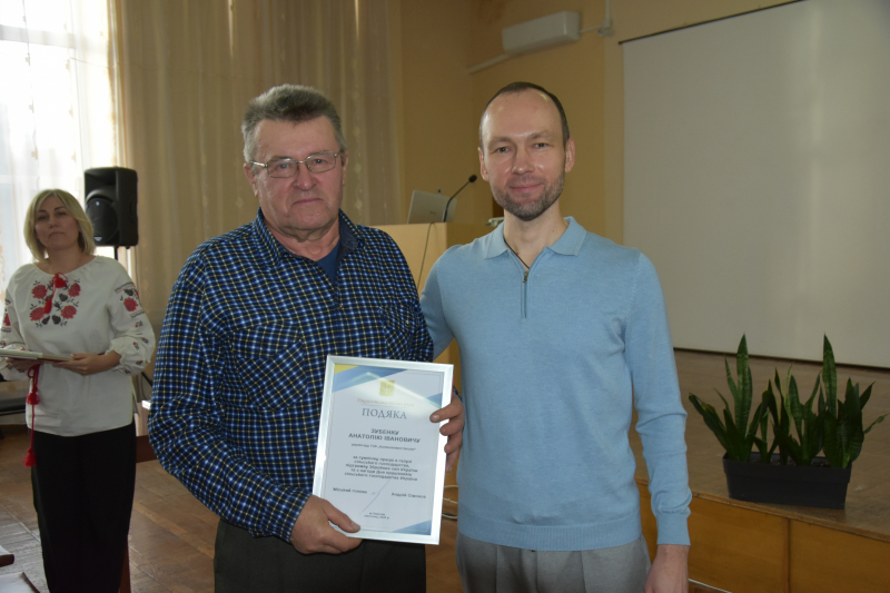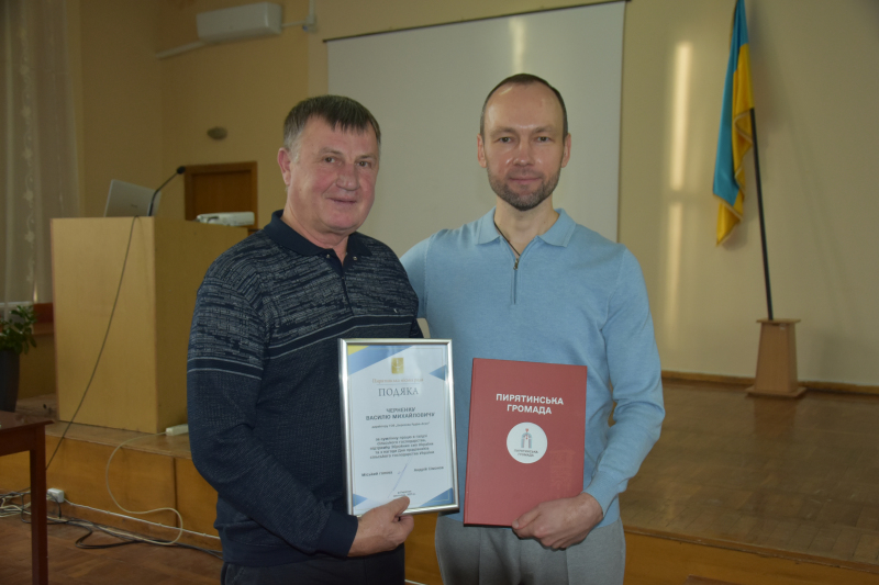 Голова громади Андрій Сімонов також передав державні відзнаки, якими нагороджено заслужених працівників галузі сільського господарства Пирятинської громади: