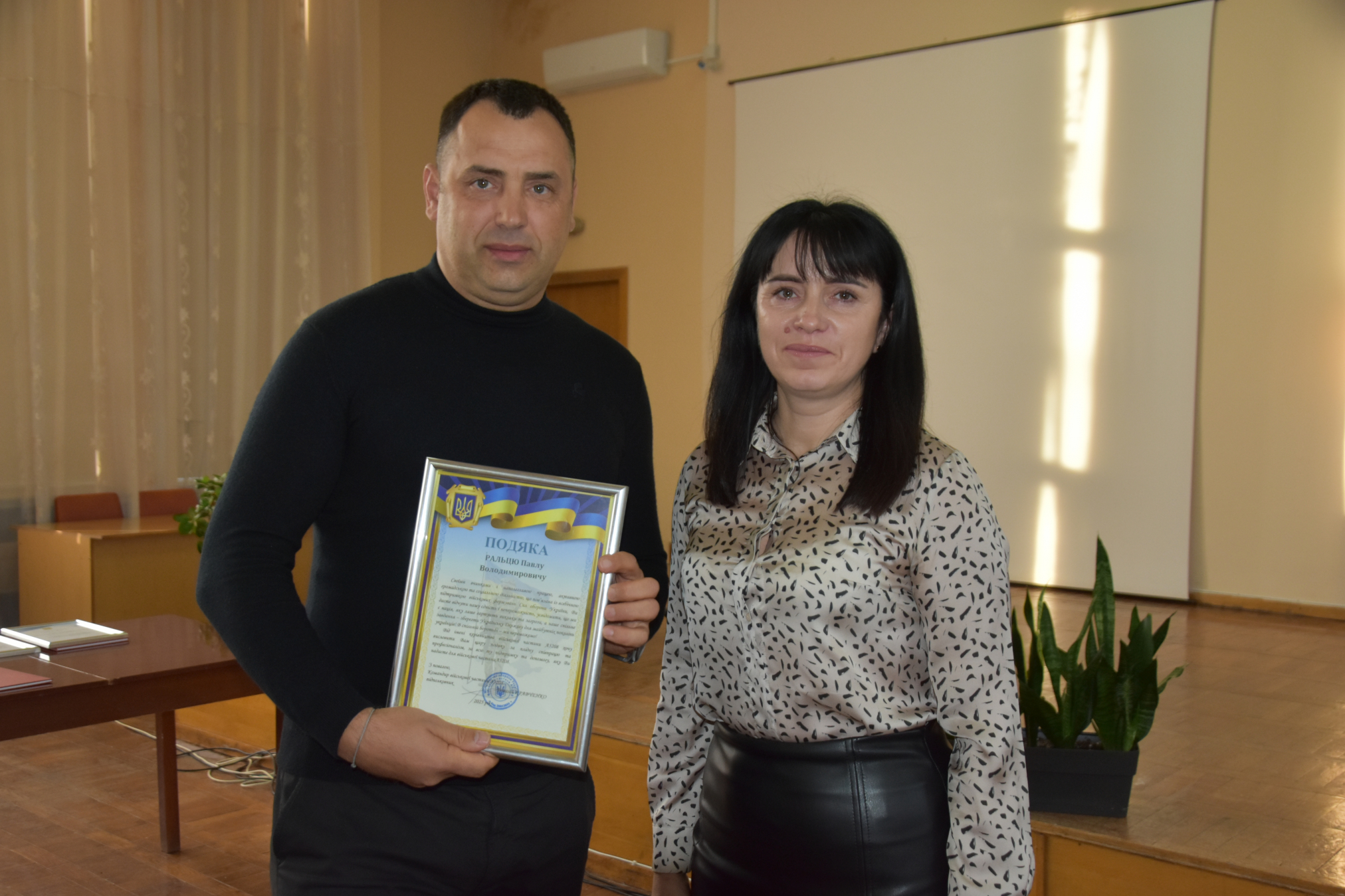 Також Подяку від військової частини А5208 вручено Павлу Ральцю. Вручила відзнаку Олена Томаш, мама військовослужбовця.