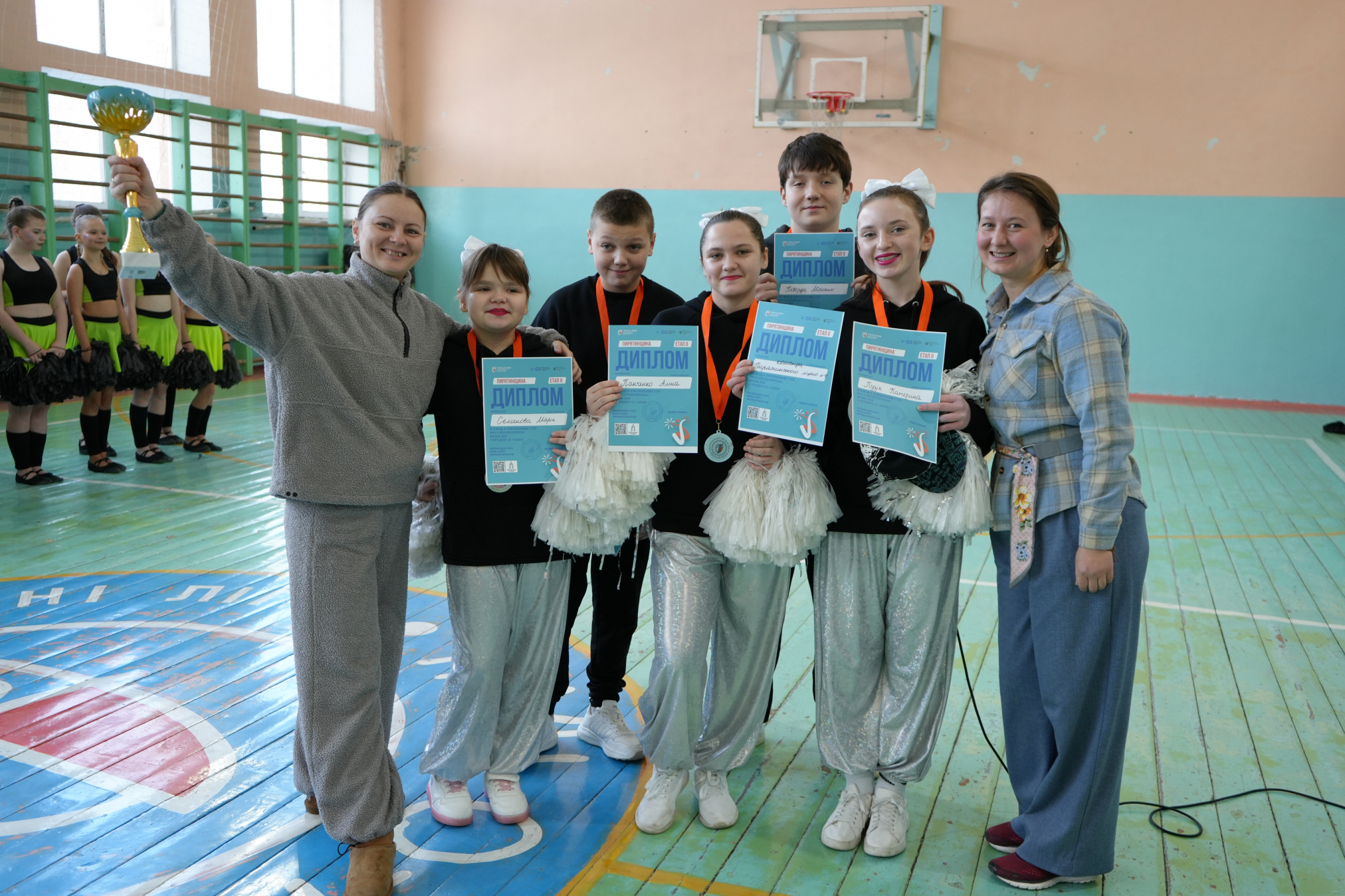 Це складний і водночас цікавий та видовищний вид спорту, який поєднує в собі елементи гімнастики, акробатики та хореографії. Кожна команда продемонструвала злагоджену роботу. І за результатами оцінок журі перемогу здобули спортсмени Пирятинського ліцею, друге місце – у ліцею №4.