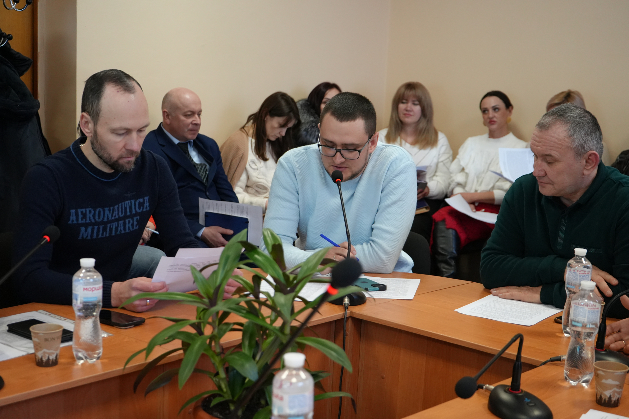 У міській раді триває підготовка до чергової сесії. У форматі спільного засідання роботу над проєктами рішень провели комісія з питань планування, фінансів, бюджету, соціально-економічного розвитку, підприємництва і комунальної власності та комісія з питань містобудування, будівництва, житлово-комунального господарства, транспорту, зв’язку, сфери послуг.