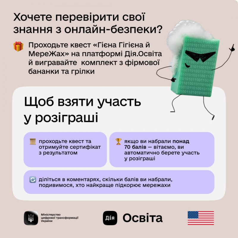 Матеріали до Дня безпечного інтернету створені на основі кампанії Дія.Освіта з кібергігієни. Кампанія реалізована ISD Group за підтримки Проєкту США «Кібербезпека критично важливої інфраструктури України». Матеріали до Дня безпечного інтернету не обов’язково відображають погляди Уряду США.