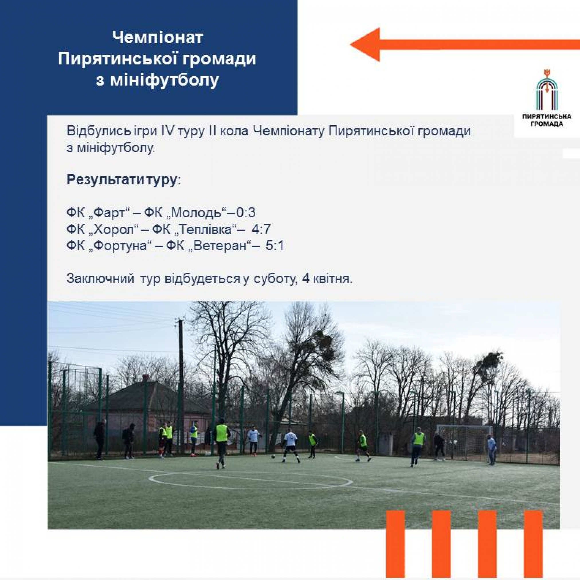 Відбулись ігри ІV туру ІI кола Чемпіонату Пирятинської громади з мініфутболу.